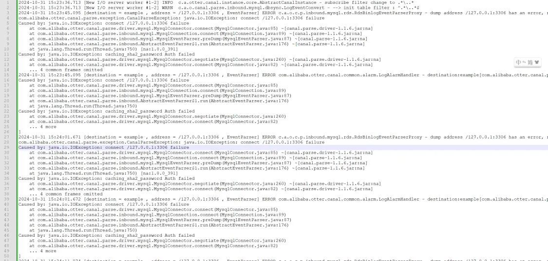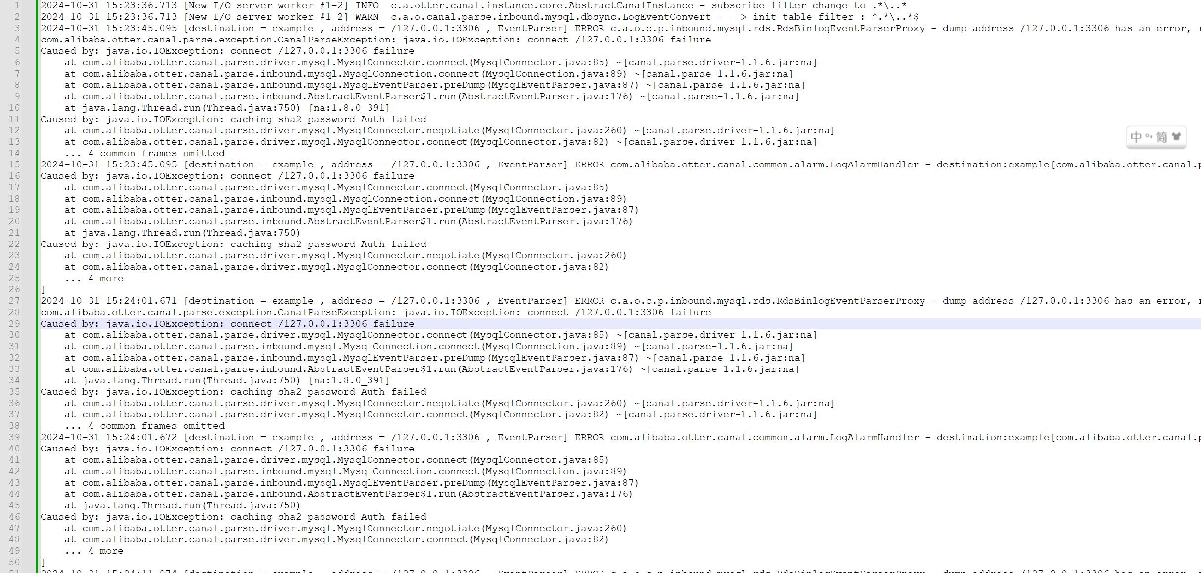 canal连接不上数据库作者: m1anyangXu / 2025年2月2日 caching_sha2_password 是 MySQL 8.0 及更高版本默认使用的密码验证插件,它提供了更强的加密保护。 如果你的应用程序(如 Canal)是用较旧的客户端库编写的,并且这些库不支持新的密码验证方式, 那么就可能会出现上述错误。 ALTER USER 'your_user'@'localhost' IDENTIFIED WITH mysql_native_password BY 'your_password'; FLUSH PRIVILEGES;